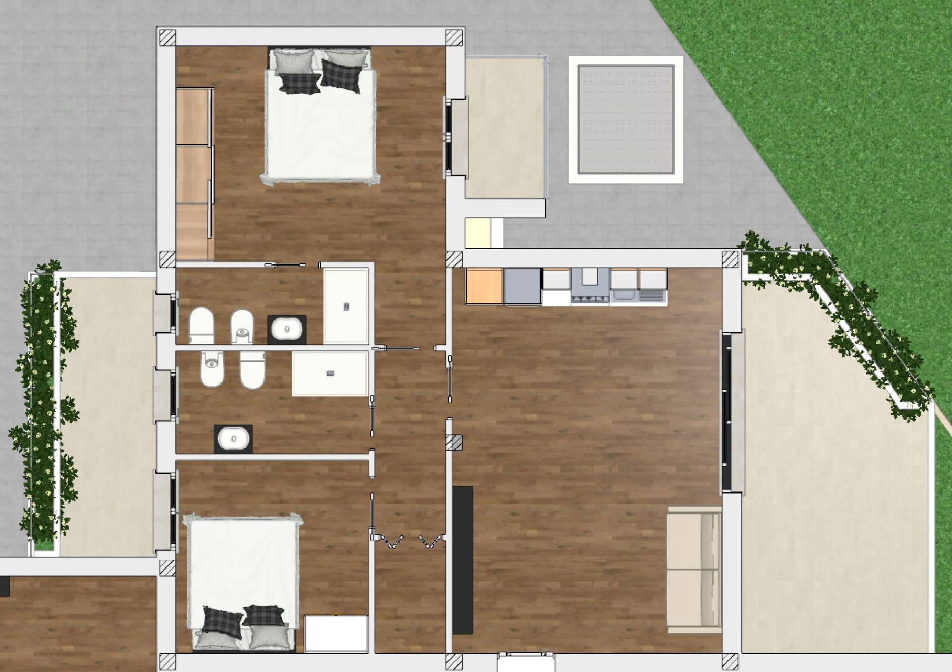 L'appartamento avrà ottime rifiniture, pavimento in gres porcellanato, finestre e portefinestre in alluminio, sanitari sospesi con sistemi anti rumore, pompe di calore per riscaldamento e raffrescamento, impianto fotovoltaico a servizio degli appartamenti, sistema domotico.