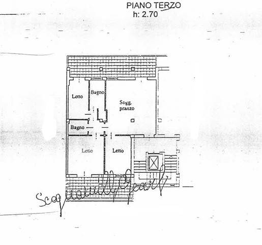 Situato al terzo piano di una palazzina con ASCENSORE in buone condizioni, l'appartamento si compone di soggiorno con angolo cottura con affaccio su terrazza abitabile, camera matrimoniale con ampio balcone, due camere singole, bagno principale, doppio servizio.