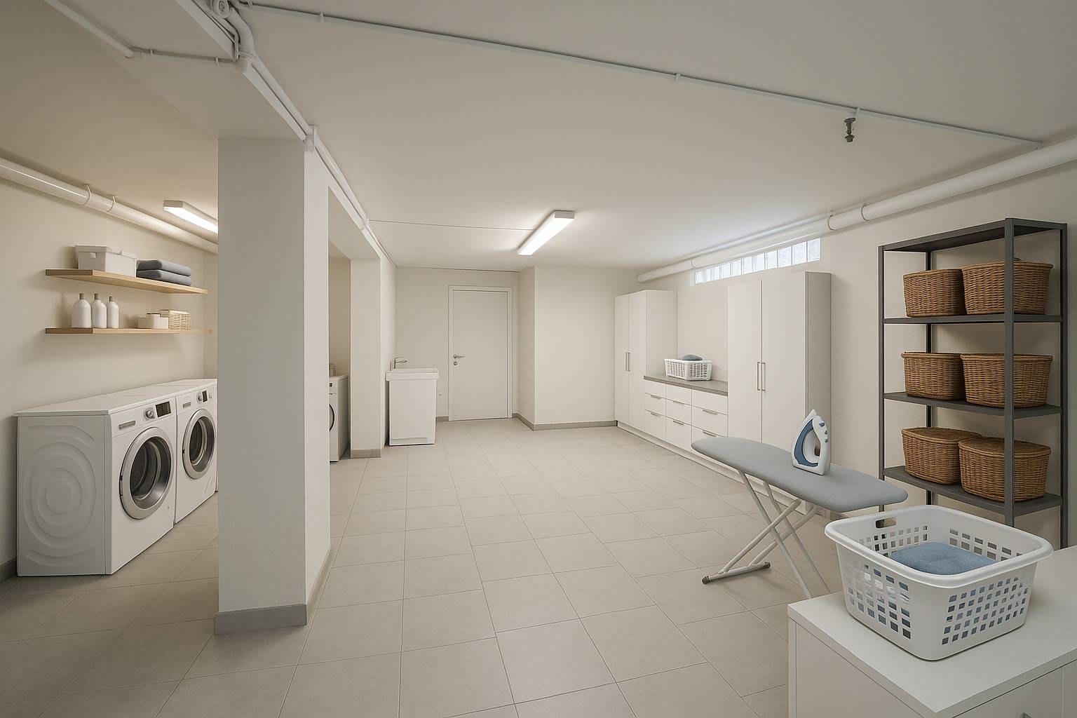 Ottimo investimento per chi cerca uno spazio ampio, pratico e vicino al mare.Le immagini renderizzate mostrano alcuni esempi di allestimento (lavanderia, laboratorio di cucito, deposito attrezzature, magazzino).