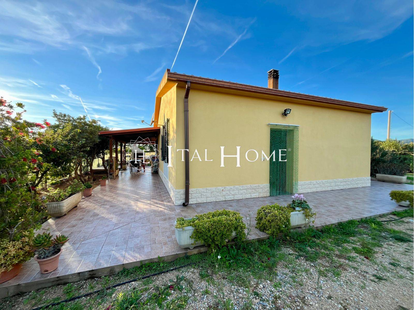 - Primo lotto di 7.000 mq, con casa indipendente disposta su un unico livello, composta da ampio soggiorno, cucinotto, due camere da letto, bagno e una veranda coperta di 100 mq. Completano la proprietà un ampio giardino, un frutteto e un grande ricovero attrezzi, il tutto servito da cancello automatico con accesso diretto dalla strada principale.